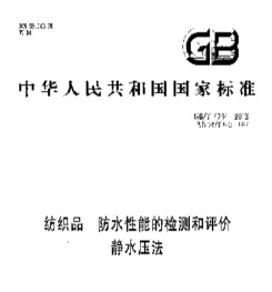 1. 耐靜水壓指標是防水透濕織物的重要指標之一。靜水壓指水通過織物時所遇到的阻力。在標準大氣壓條件下,織物承受持續(xù)上升的水壓,直到織物背面滲出水珠為止,此時,測得的水的壓力值即為靜水壓??椢锬艹惺艿撵o水壓越大,防水性或抗?jié)B漏性越好。